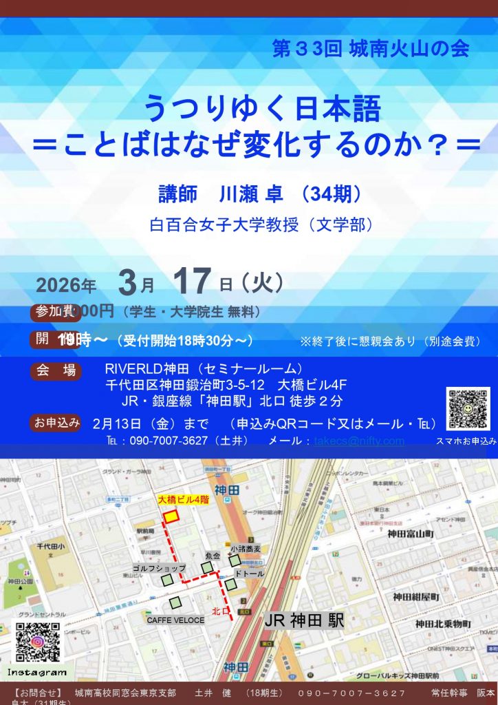 第33回 城南火山の会 2026年3月17日(火)19時~