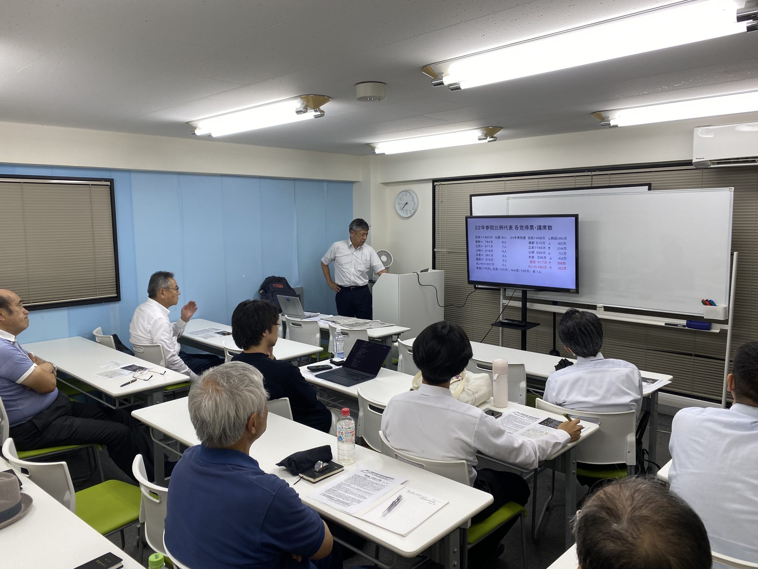 講義の詳細内容は非公開となりますが、選挙結果が明らかとなった現在(8月4日)に振り返ってみると、講師による多角的かつ鋭い分析を通じて、重要な論点への理解が深まりました。特に、選挙後の連立構造や野党連携、新興政党の動向などを読み解く上で、多くの示唆に富んだ内容であったと感じられたのではないでしょうか。日頃から政治の動きに対して関心を持つことの重要性を改めて認識させられる機会となりました。